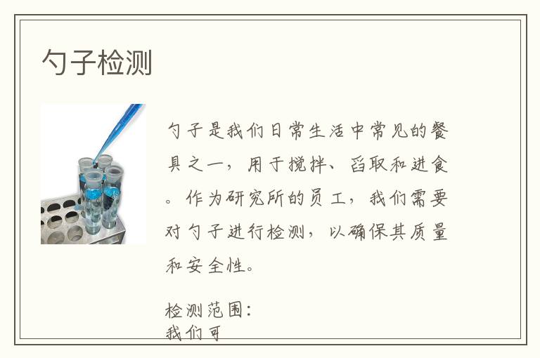 關(guān)鍵詞:勺子測試方法,勺子項(xiàng)目報(bào)價(jià),勺子測試周期