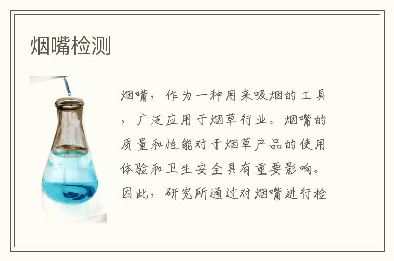 燃燒性能測試:評估煙嘴材料在高溫下的燃燒特性和殘渣,防止易燃或有毒氣體釋放,測試需模擬實際使用條件以確保安全合規(guī)。