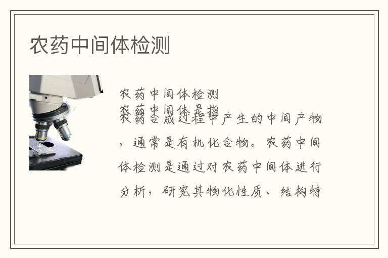 關(guān)鍵詞:農(nóng)藥中間體測試周期,農(nóng)藥中間體項目報價,農(nóng)藥中間體測試標準