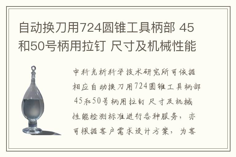 關(guān)鍵詞:自動(dòng)換刀用724圓錐工具柄部45和50號(hào)柄用拉釘尺寸及機(jī)械性能項(xiàng)目報(bào)價(jià),自動(dòng)換刀用724圓錐工具柄部45和50號(hào)柄用拉釘尺寸及機(jī)械性能測(cè)試儀器,自動(dòng)換刀用724