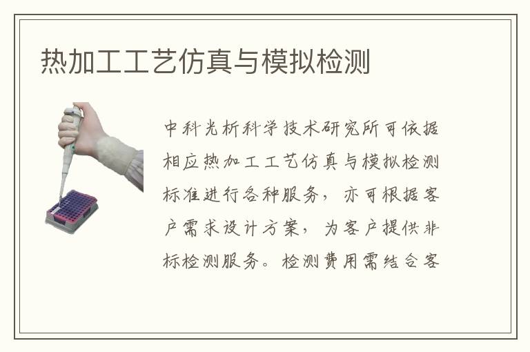 更多熱加工工藝仿真與模擬檢測(cè)標(biāo)準(zhǔn)可咨詢工程師,工程師會(huì)根據(jù)不同產(chǎn)品類型的特點(diǎn)、不同行業(yè)和不同國(guó)家的法規(guī)標(biāo)準(zhǔn)以及客戶的需求,選取相應(yīng)標(biāo)準(zhǔn)的項(xiàng)目和方法進(jìn)行熱加工工藝仿真與模擬檢測(cè)。