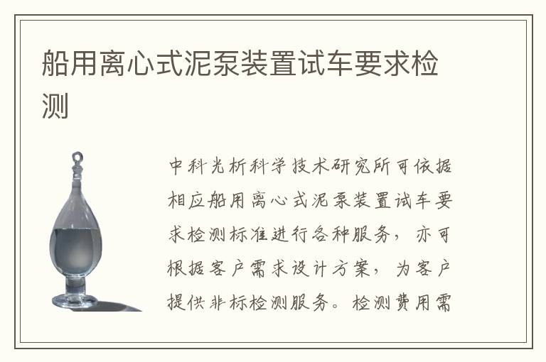 關(guān)鍵詞:船用離心式泥泵裝置試車要求檢測(cè)