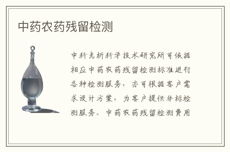 關(guān)鍵詞:中藥農(nóng)藥殘留測試機構(gòu),中藥農(nóng)藥殘留項目報價,中藥農(nóng)藥殘留測試方法
