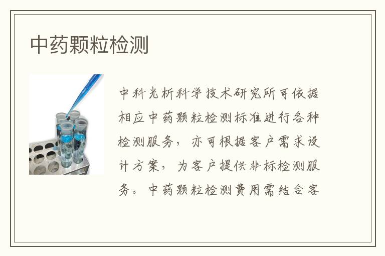 關(guān)鍵詞:中藥顆粒測(cè)試范圍,中藥顆粒測(cè)試方法,中藥顆粒測(cè)試周期