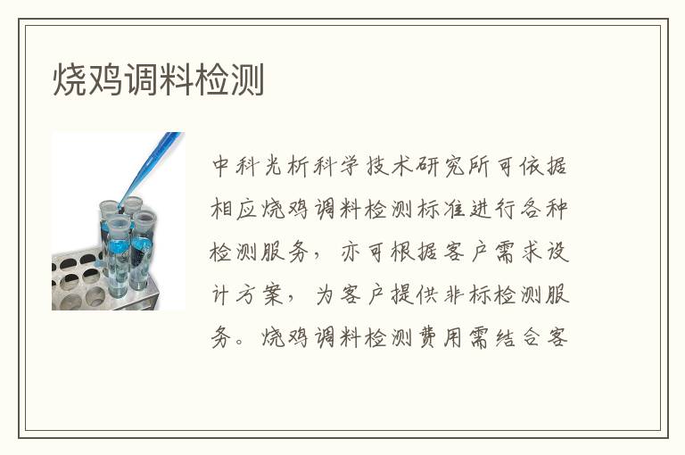 關(guān)鍵詞:燒雞調(diào)料測(cè)試案例,燒雞調(diào)料測(cè)試儀器,燒雞調(diào)料項(xiàng)目報(bào)價(jià)