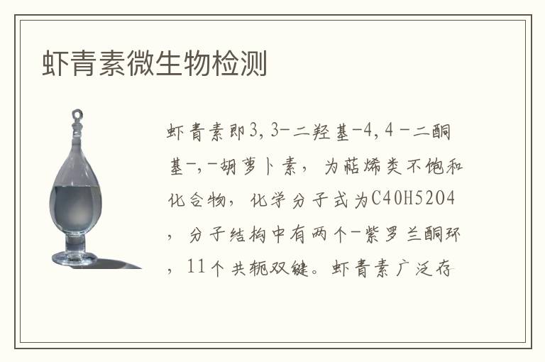 關(guān)鍵詞:蝦青素微生物測(cè)試案例,蝦青素微生物測(cè)試標(biāo)準(zhǔn),蝦青素微生物測(cè)試儀器