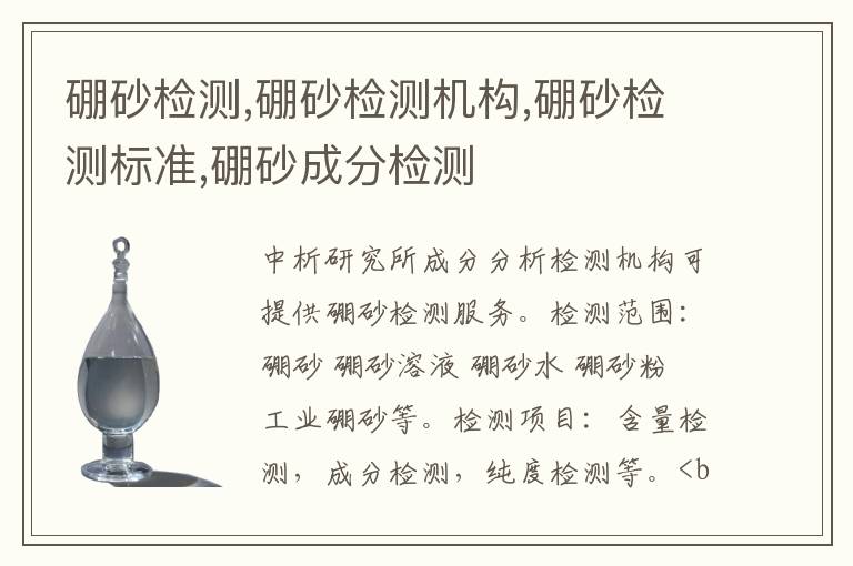 關(guān)鍵詞:硼砂測(cè)試案例,硼砂測(cè)試方法,硼砂測(cè)試標(biāo)準(zhǔn)