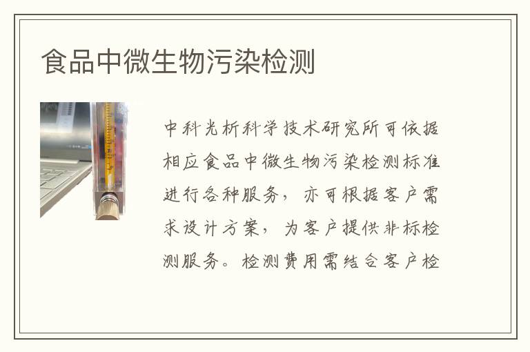 關(guān)鍵詞:食品中微生物污染測(cè)試機(jī)構(gòu),食品中微生物污染測(cè)試范圍,食品中微生物污染測(cè)試標(biāo)準(zhǔn)