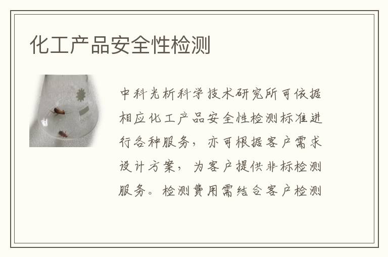 關(guān)鍵詞:化工產(chǎn)品安全性測試方法,化工產(chǎn)品安全性測試機(jī)構(gòu),化工產(chǎn)品安全性測試范圍
