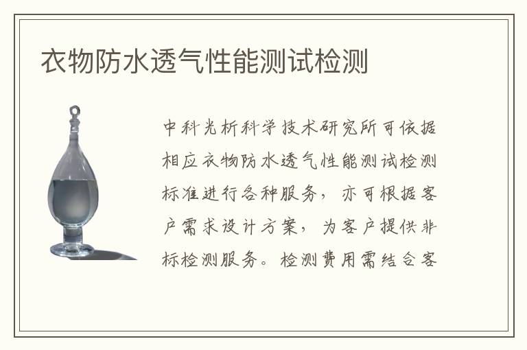關鍵詞:衣物防水透氣性能測試測試案例,衣物防水透氣性能測試測試標準,衣物防水透氣性能測試測試周期