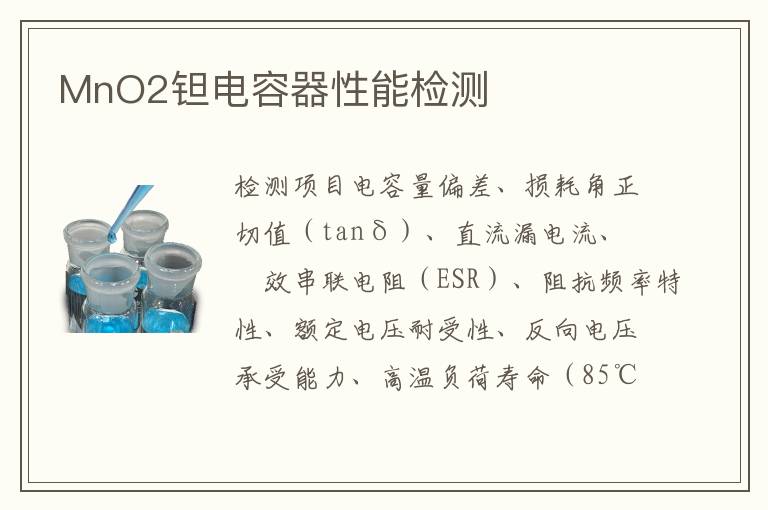 關鍵詞:MnO2鉭電容器性能測試周期,MnO2鉭電容器性能測試儀器,MnO2鉭電容器性能測試范圍