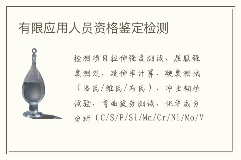 關(guān)鍵詞:有限應(yīng)用人員資格鑒定測試案例,有限應(yīng)用人員資格鑒定測試標(biāo)準(zhǔn),有限應(yīng)用人員資格鑒定測試范圍