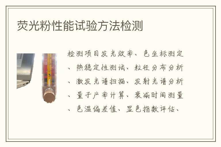 關(guān)鍵詞:熒光粉性能試驗(yàn)方法項(xiàng)目報(bào)價(jià),熒光粉性能試驗(yàn)方法測(cè)試儀器,熒光粉性能試驗(yàn)方法測(cè)試周期