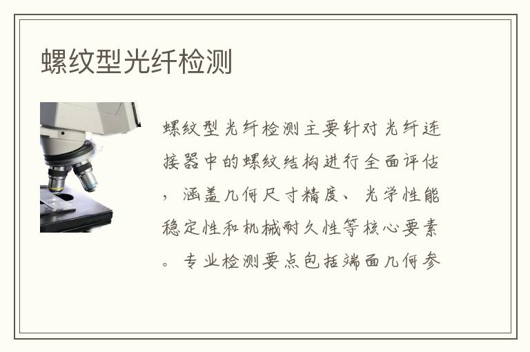 關(guān)鍵詞:螺紋型光纖測試方法,螺紋型光纖測試機(jī)構(gòu),螺紋型光纖測試周期