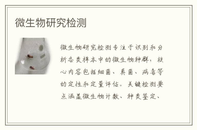 關(guān)鍵詞:微生物研究測(cè)試機(jī)構(gòu),微生物研究測(cè)試范圍,微生物研究測(cè)試方法