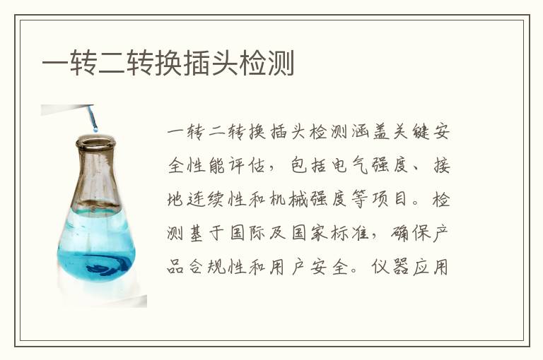 關(guān)鍵詞:一轉(zhuǎn)二轉(zhuǎn)換插頭測試機構(gòu),一轉(zhuǎn)二轉(zhuǎn)換插頭測試方法,一轉(zhuǎn)二轉(zhuǎn)換插頭項目報價