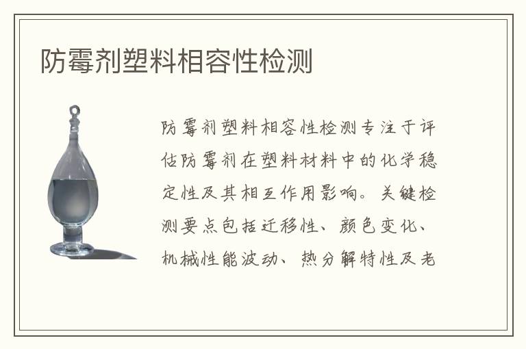 關(guān)鍵詞:防霉劑塑料相容性測(cè)試周期,防霉劑塑料相容性測(cè)試范圍,防霉劑塑料相容性測(cè)試儀器