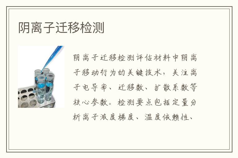 關鍵詞:陰離子遷移測試案例,陰離子遷移測試范圍,陰離子遷移測試方法