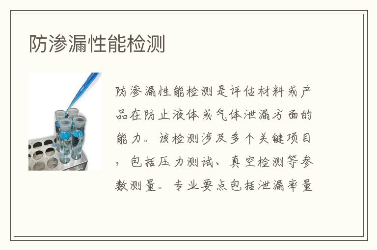 關(guān)鍵詞:防滲漏性能測(cè)試標(biāo)準(zhǔn),防滲漏性能測(cè)試方法,防滲漏性能測(cè)試機(jī)構(gòu)