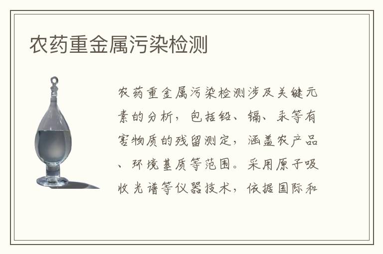 關(guān)鍵詞:農(nóng)藥重金屬污染測(cè)試周期,農(nóng)藥重金屬污染測(cè)試標(biāo)準(zhǔn),農(nóng)藥重金屬污染測(cè)試范圍