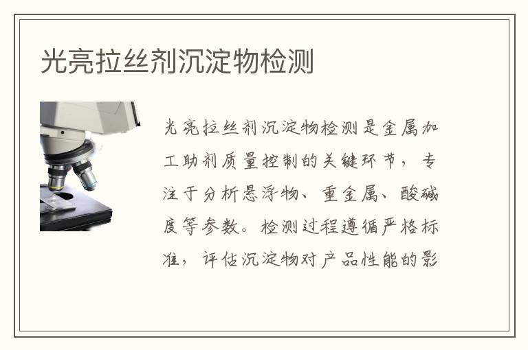 關(guān)鍵詞:光亮拉絲劑沉淀物測(cè)試案例,光亮拉絲劑沉淀物測(cè)試方法,光亮拉絲劑沉淀物測(cè)試儀器