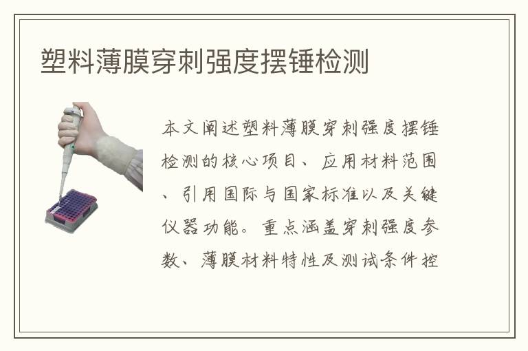 關(guān)鍵詞:塑料薄膜穿刺強度擺錘測試周期,塑料薄膜穿刺強度擺錘測試機構(gòu),塑料薄膜穿刺強度擺錘測試方法