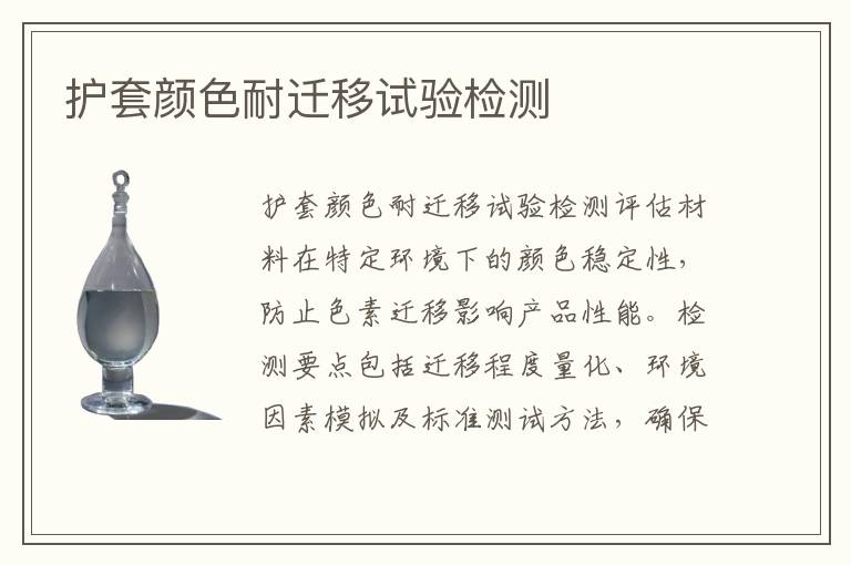 關(guān)鍵詞:護套顏色耐遷移試驗測試范圍,護套顏色耐遷移試驗測試標(biāo)準(zhǔn),護套顏色耐遷移試驗測試方法