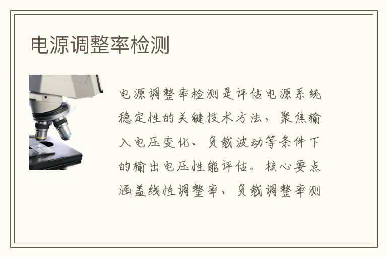 關(guān)鍵詞:電源調(diào)整率測(cè)試周期,電源調(diào)整率測(cè)試案例,電源調(diào)整率項(xiàng)目報(bào)價(jià)