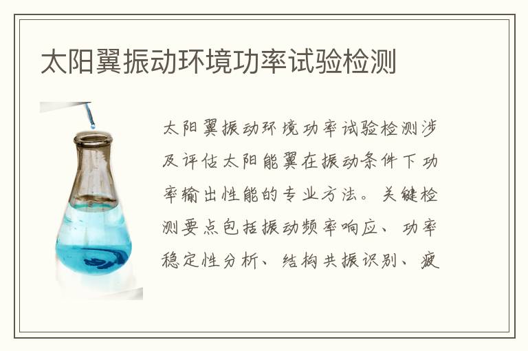 關(guān)鍵詞:太陽翼振動(dòng)環(huán)境功率試驗(yàn)測試方法,太陽翼振動(dòng)環(huán)境功率試驗(yàn)測試機(jī)構(gòu),太陽翼振動(dòng)環(huán)境功率試驗(yàn)項(xiàng)目報(bào)價(jià)