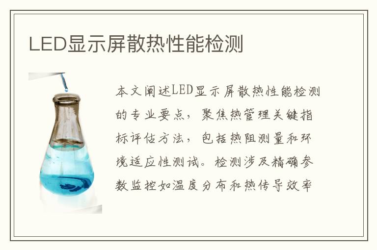 關(guān)鍵詞:LED顯示屏散熱性能測試周期,LED顯示屏散熱性能項目報價,LED顯示屏散熱性能測試方法