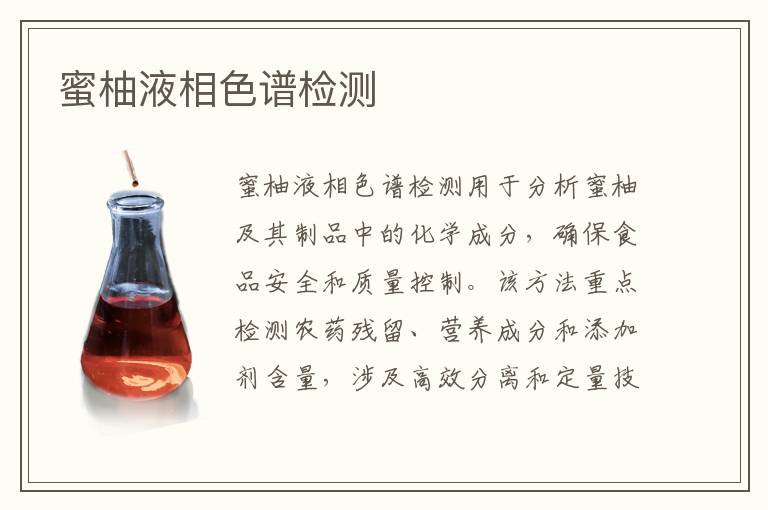蜜柚罐頭:檢測(cè)罐頭產(chǎn)品中的保存劑、糖分和維生素保留情況,用于保質(zhì)期研究和食品保存技術(shù)評(píng)估。