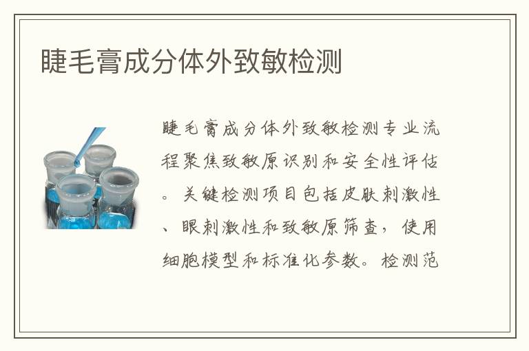 關(guān)鍵詞:睫毛膏成分體外致敏測試方法,睫毛膏成分體外致敏測試案例,睫毛膏成分體外致敏測試周期