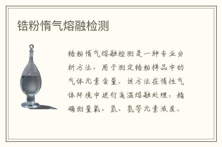 鋯粉惰氣熔融檢測(cè)是一種專業(yè)分析方法,用于測(cè)定鋯粉在惰性氣體環(huán)境下的熔融特性、雜質(zhì)含量和物理性質(zhì)。關(guān)鍵檢測(cè)要點(diǎn)包括熔點(diǎn)精確測(cè)量、氧氮?dú)錃怏w分析以及粉末粒度對(duì)熔融行為的影響,確保材料在高溫應(yīng)用中的性能可靠性。