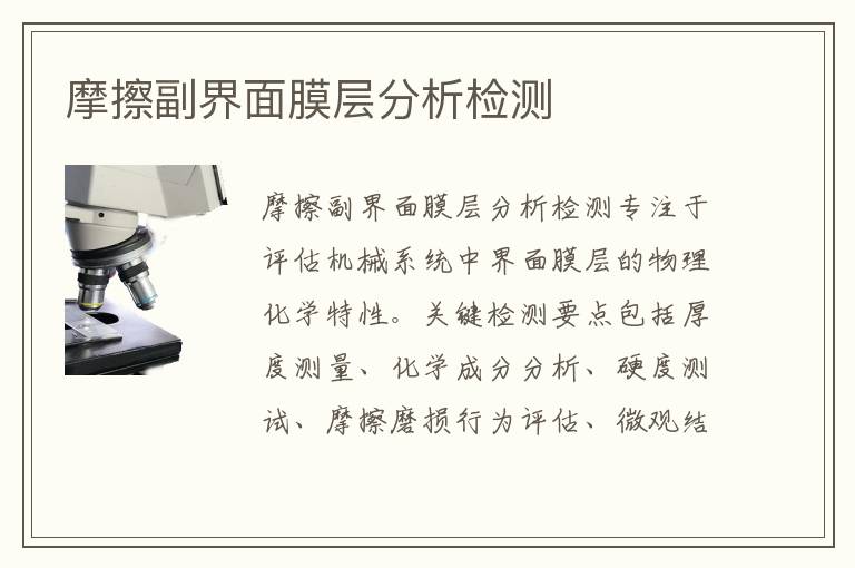 關(guān)鍵詞:摩擦副界面膜層分析測(cè)試周期,摩擦副界面膜層分析測(cè)試方法,摩擦副界面膜層分析測(cè)試標(biāo)準(zhǔn)