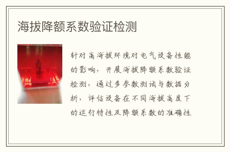 關(guān)鍵詞:海拔降額系數(shù)驗(yàn)證項(xiàng)目報(bào)價(jià),海拔降額系數(shù)驗(yàn)證測(cè)試儀器,海拔降額系數(shù)驗(yàn)證測(cè)試機(jī)構(gòu)