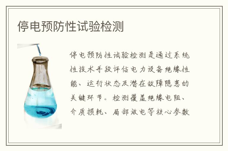 關(guān)鍵詞:停電預(yù)防性試驗(yàn)測(cè)試周期,停電預(yù)防性試驗(yàn)項(xiàng)目報(bào)價(jià),停電預(yù)防性試驗(yàn)測(cè)試標(biāo)準(zhǔn)