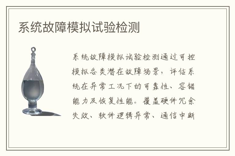 關(guān)鍵詞:系統(tǒng)故障模擬試驗測試標(biāo)準(zhǔn),系統(tǒng)故障模擬試驗測試案例,系統(tǒng)故障模擬試驗測試機構(gòu)