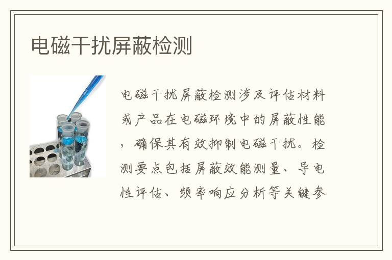 關(guān)鍵詞:電磁干擾屏蔽項(xiàng)目報(bào)價(jià),電磁干擾屏蔽測(cè)試標(biāo)準(zhǔn),電磁干擾屏蔽測(cè)試周期