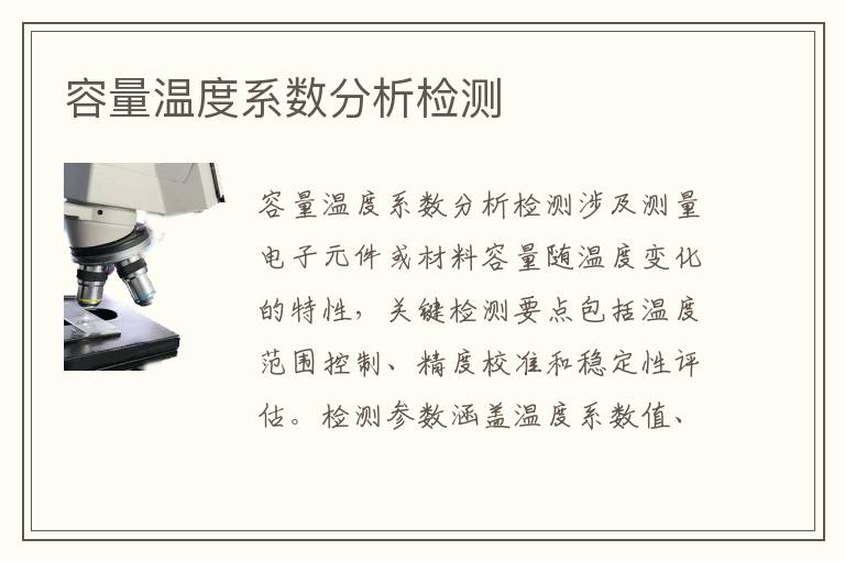 關鍵詞:容量溫度系數(shù)分析測試范圍,容量溫度系數(shù)分析測試機構,容量溫度系數(shù)分析測試案例