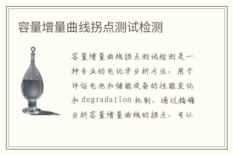 關鍵詞:容量增量曲線拐點測試測試標準,容量增量曲線拐點測試測試機構(gòu),容量增量曲線拐點測試測試方法