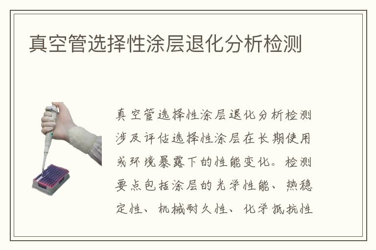 關(guān)鍵詞:真空管選擇性涂層退化分析項目報價,真空管選擇性涂層退化分析測試儀器,真空管選擇性涂層退化分析測試機構(gòu)