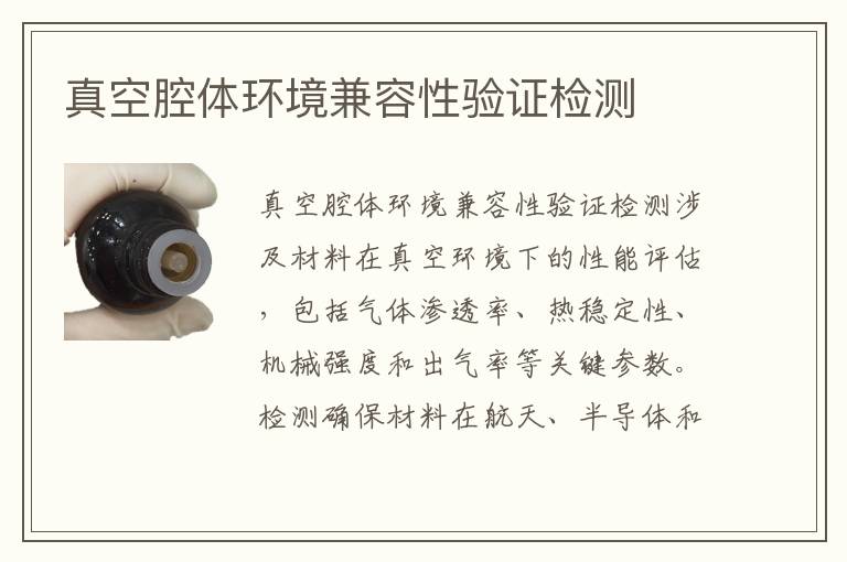 關(guān)鍵詞:真空腔體環(huán)境兼容性驗(yàn)證測(cè)試標(biāo)準(zhǔn),真空腔體環(huán)境兼容性驗(yàn)證項(xiàng)目報(bào)價(jià),真空腔體環(huán)境兼容性驗(yàn)證測(cè)試周期