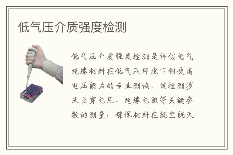 低氣壓介電強(qiáng)度測試:測量絕緣材料在低氣壓條件下的擊穿電壓值,評估其在高海拔環(huán)境中的絕緣性能可靠性,確保材料在實(shí)際應(yīng)用中的安全性。