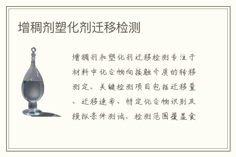 關(guān)鍵詞:增稠劑塑化劑遷移測試范圍,增稠劑塑化劑遷移測試周期,增稠劑塑化劑遷移測試方法