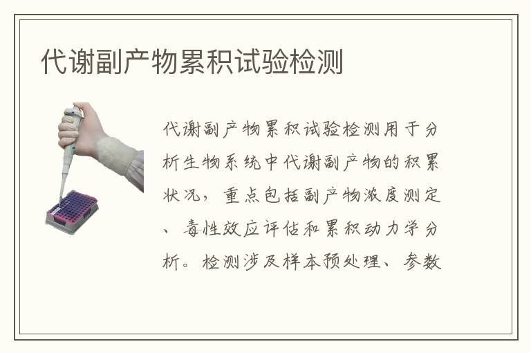 關(guān)鍵詞:代謝副產(chǎn)物累積試驗測試周期,代謝副產(chǎn)物累積試驗測試范圍,代謝副產(chǎn)物累積試驗測試方法