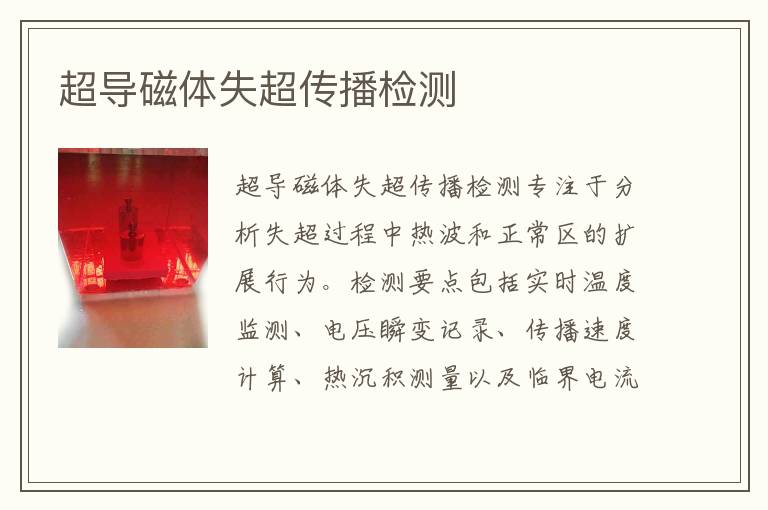 失超傳播速度檢測(cè):測(cè)量失超波在超導(dǎo)磁體中的傳播速率,用于評(píng)估熱失控風(fēng)險(xiǎn)和系統(tǒng)響應(yīng)時(shí)間,確保安全設(shè)計(jì)符合要求。