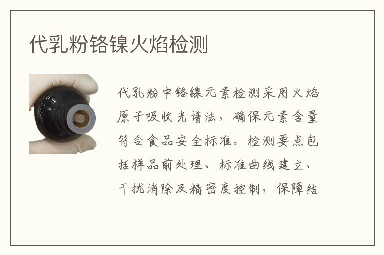 鉻含量檢測(cè):通過火焰原子吸收光譜法測(cè)定代乳粉中鉻元素濃度,確保其低于食品安全限量標(biāo)準(zhǔn),避免重金屬超標(biāo)對(duì)嬰幼兒健康造成潛在風(fēng)險(xiǎn)。