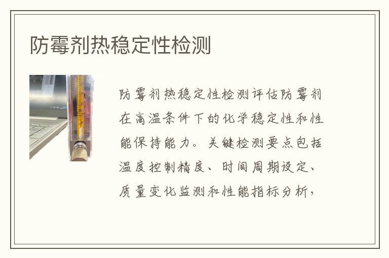 關(guān)鍵詞:防霉劑熱穩(wěn)定性測(cè)試儀器,防霉劑熱穩(wěn)定性測(cè)試機(jī)構(gòu),防霉劑熱穩(wěn)定性測(cè)試范圍