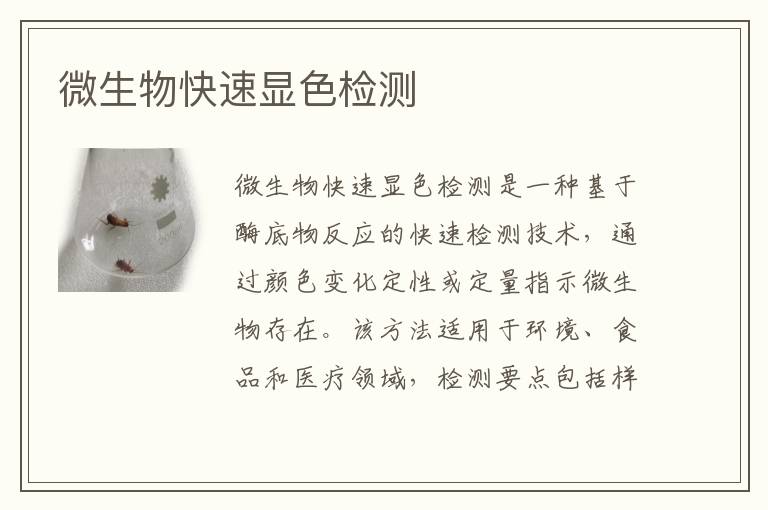 關(guān)鍵詞:微生物快速顯色測試案例,微生物快速顯色測試周期,微生物快速顯色測試標(biāo)準(zhǔn)