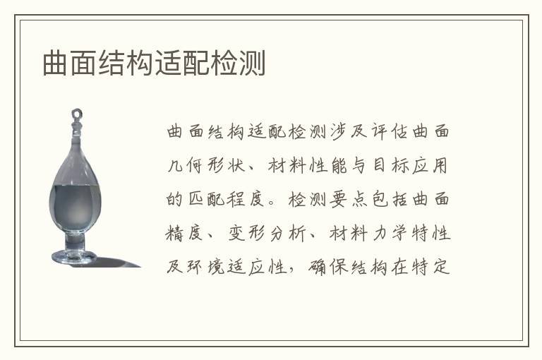 曲面結(jié)構(gòu)適配檢測(cè)涉及評(píng)估曲面幾何形狀、材料性能與目標(biāo)應(yīng)用的匹配程度。檢測(cè)要點(diǎn)包括曲面精度、變形分析、材料力學(xué)特性及環(huán)境適應(yīng)性,確保結(jié)構(gòu)在特定工況下的功能可靠性和安全性。采用高精度儀器和國(guó)際標(biāo)準(zhǔn)進(jìn)行客觀測(cè)量。